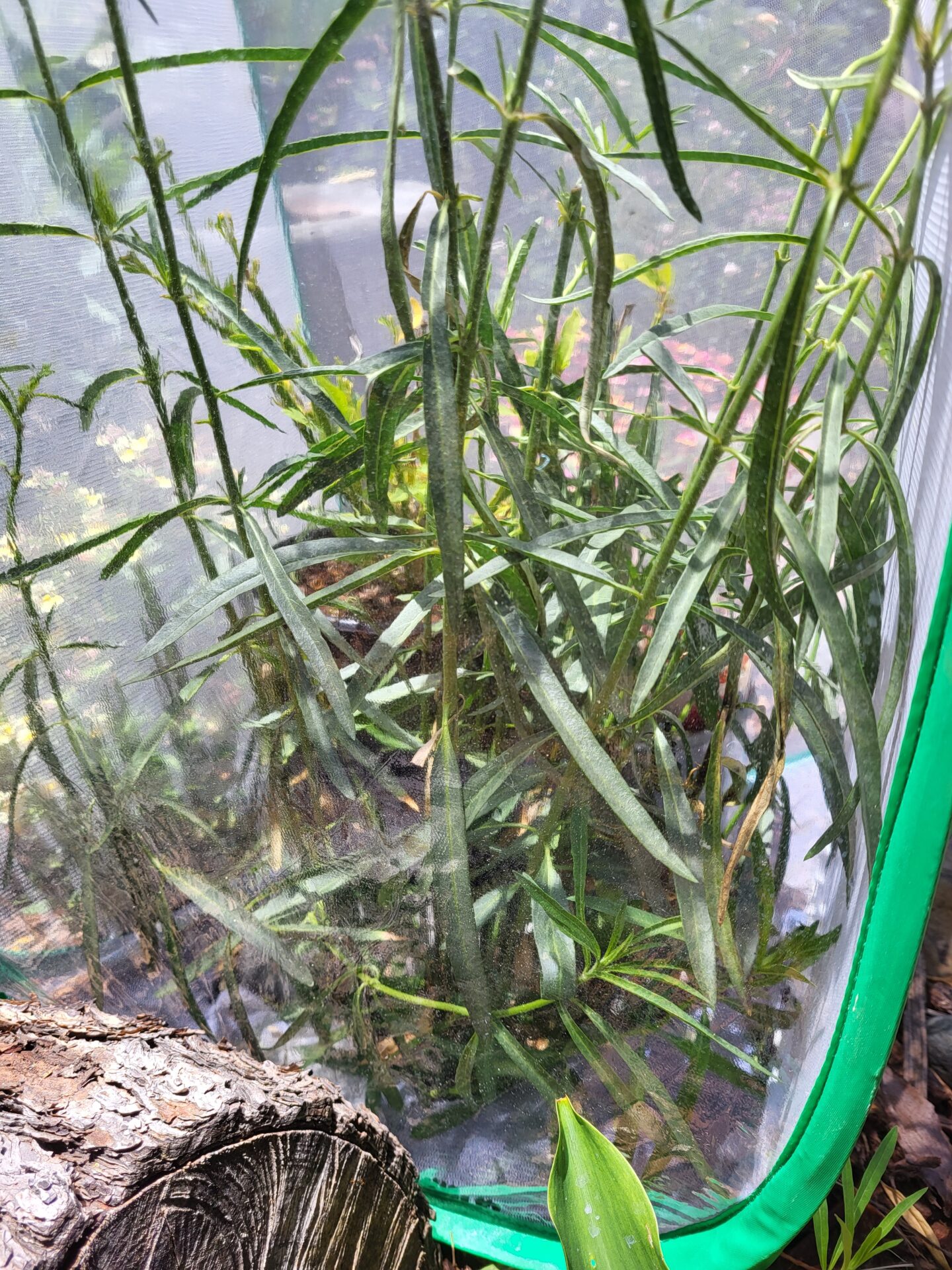At this point I have learned a lot of lessons of what NOT to do. Basically it is that they need a lot of food right from the beginning, and they need space to form into a chrysalis. If you don’t give them this from the very beginning there will be a lot of uncertainly and trouble. Thankfully I already have a space in the garden with a lot of milkweed growing. I just need hubby to build the enclosure for me, so the next batch will be a lot easier and less hands on.