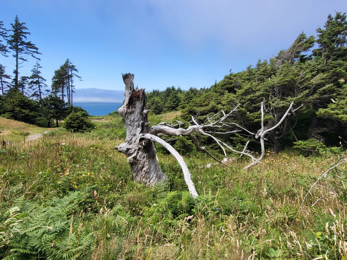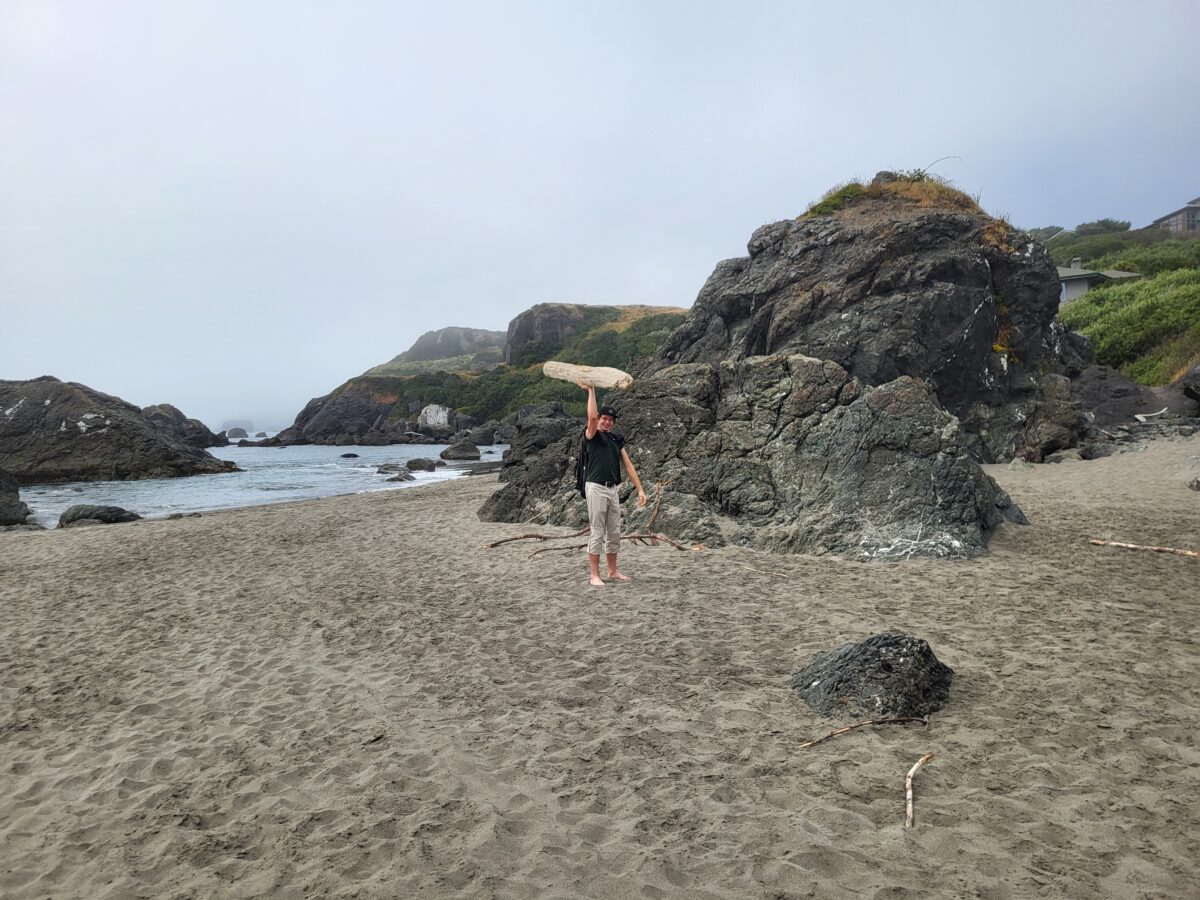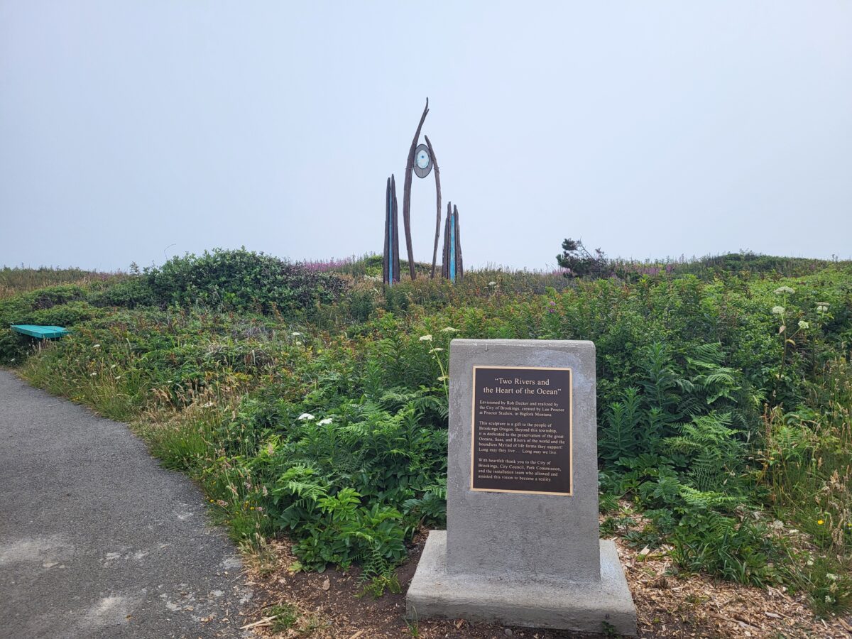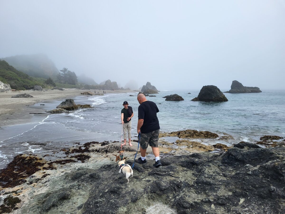 I made plans and God laughed and laughed and laughed. Our plan was to leave Scotia ( by the Avenue of the Giants) and drive up the coast to Brookings, Oregon. Stopping off at attractions along the way. ERG! This time I was paying more attention to the signs and was quicker to Google attractions to see if we should stop. The first place that popped up was The Humbolt Botanical Gardens. The website looked AMAZING. We took the exit and parked the RV at the college next door. We detached the Honda Element we are towing, and all piled in. Hubby turned the key and… click click click. Dead battery. WHAT??? But it was running this morning! Something about how we are flat towing it drained the battery. ERG! So we hooked it back up to the RV and made our way up the coast 10 minutes to an O’Reilly auto parts store. We were barely out of the car, when a gentleman that worked there was asking if we needed help. He checked our battery to be sure it was okay and charged it up at no cost. SPIFFY!!! We bought a battery charger from him so we could figure out what was going on later. From there hubby and the baby bassets were driving in the RV, and I followed behind in the Honda Element to make sure the car ran okay. As disappointing at it was with the battery dying, and not being able to see the Humbolt Botanical Gardens, things worked out well for us. We were able to get on the road and make our way to Brookings.