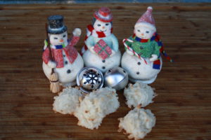 I love Coconut Macaroon Cookies. Mainly because they taste delicious, but also because you can make three or four batches pretty quickly. I add these cookies to the Christmas cookie plates I hand out to my friends and family each year. As I have said before, I really like to give my friends a variety of different looking cookies to make the plates special. If I am looking to add a bit more color I will lightly sprinkle red or green colored sugar over the cookies before baking. Or you can dip them in chocolate after baking, but then you won’t want to share! I got this recipe a few years back from the back of a package of Baker’s Flaked Coconut. Enjoy!