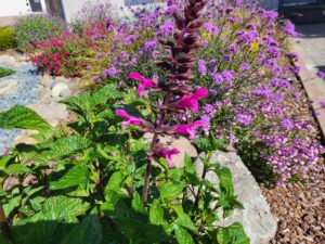 I am really happy with how the Lavender and Salvia are coming along in the side yard. A yard that I could have very easily ignored since I didn’t think it had enough space to do anything in, has really become my favorite part. I really love just how tough the Salvia is. On more than one occasion something or someone has landed on top of them and I have had to chop them back hard. Each and every time they come back bigger and stronger. Not strong enough to handle a racoon landing on them, but pretty strong. I also love the Nasturtiums that are growing against the planter box. I didn’t put them there, but the yellow blooms look fantastic against the purple.