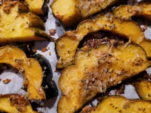 Parmesan Herb Roasted Acorn Squash – I had originally bought the acorn squash to use as decoration for Halloween and Thanksgiving, but hubby pointed out that it came from a refrigerated section of the produce department. I guess I have to cook it then. I popped the cap off a beer, put on some Louis Capaldi, and searched for a roasted acorn squash recipe. The very first result was “Perfect Roasted Acorn Squash Recipe” by Cookie and Kale. I hate Kale, but gosh darn it if I don’t love me some cookies!
